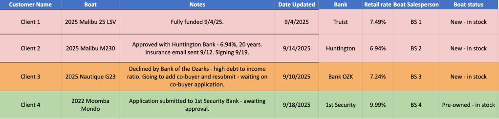 Overview: As Finance Manager at Oregon’s largest boat dealership, I oversee the full loan process for customers, from application to final funding. I ensure smooth communication between customers, banks, and insurance providers while maximizing dealership revenue through strategic financing and backend product sales.